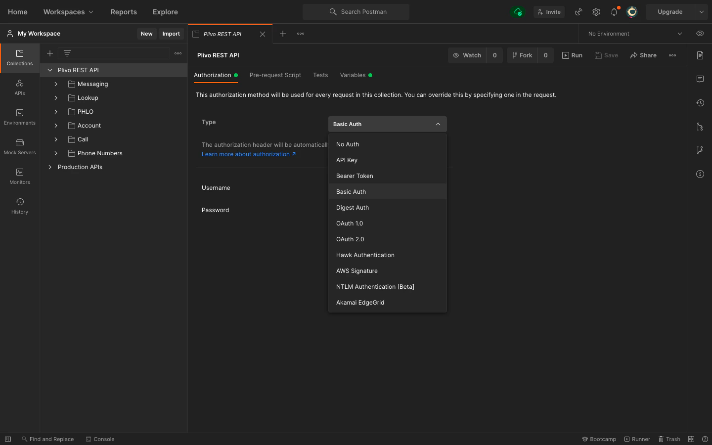 {{"{{auth_id"}}}}within your Postman collection. We’ve already done that for you for all the APIs in the Plivo collection.