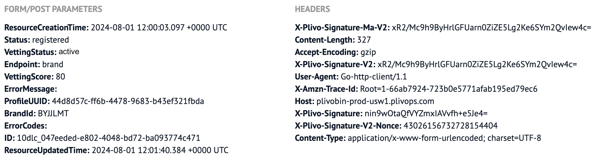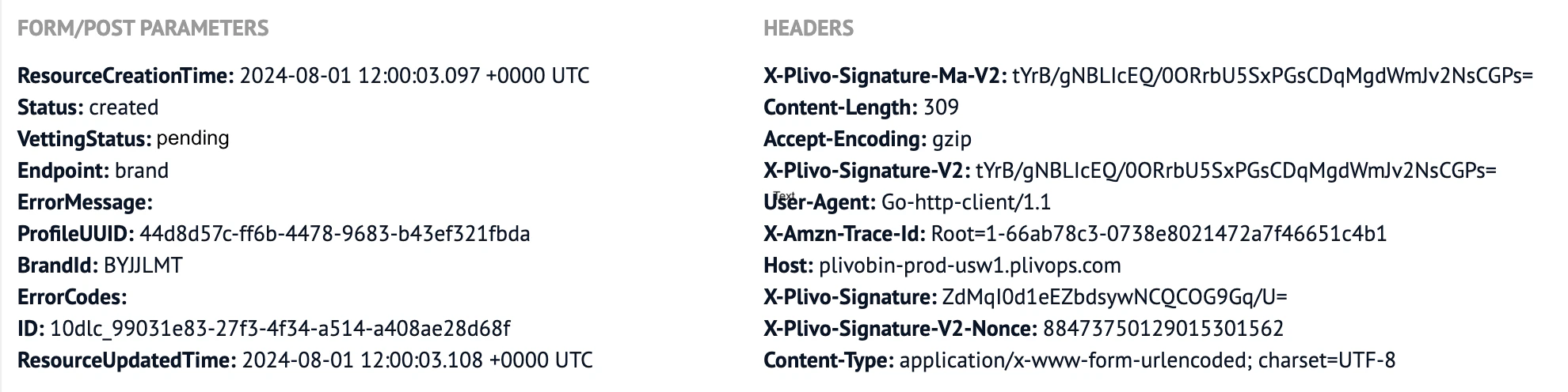| number_linking | created | Request to link your Plivo long code with the campaign was submitted to operators. |