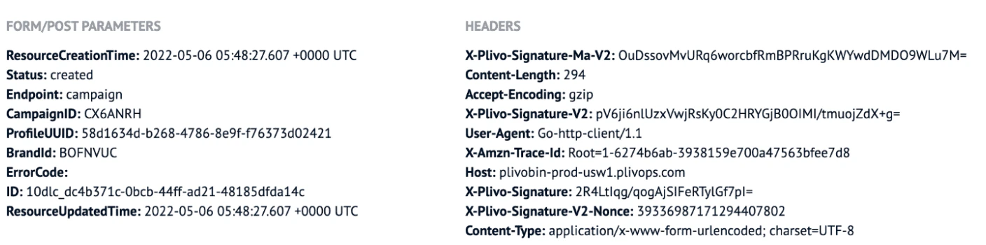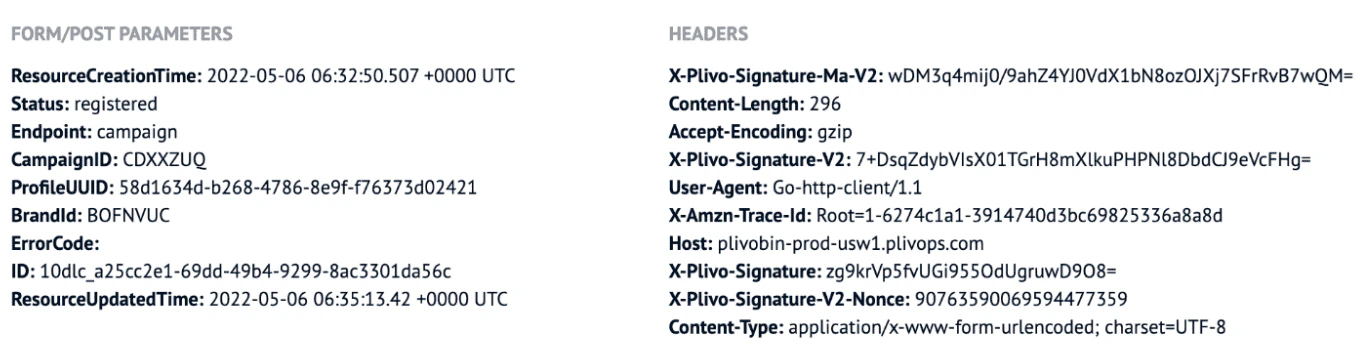 | registered | Campaign was registered with TCR. You can now link your Plivo long codes with this campaign. | |