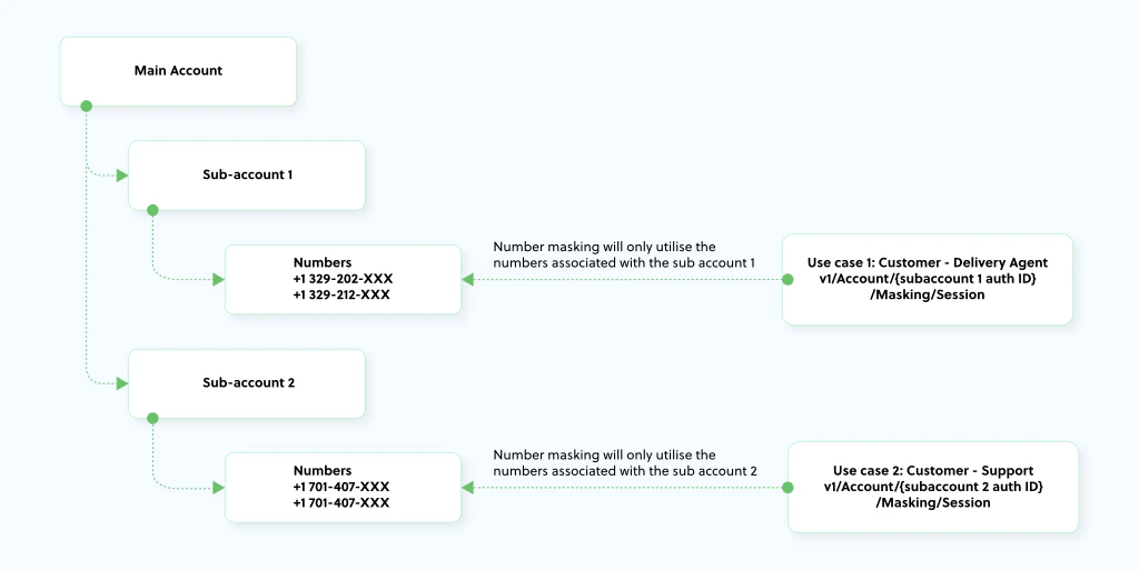 You can now allocate dedicated numbers for specific purposes with Plivo’s enhanced support for number masking through sub-accounts. Previously, to leverage the number masking feature across various use cases—such as Customer-Delivery Agent Interaction, Customer-Support Interaction, Seller-Buyer Interaction, etc.— users were required to create multiple Plivo accounts. This new capability eliminates the need for creating and managing multiple Plivo accounts, thereby saving you both time and effort. Here’s how to make the most of Plivo’s number masking feature using sub-accounts.Using Sub-accounts with Number Masking