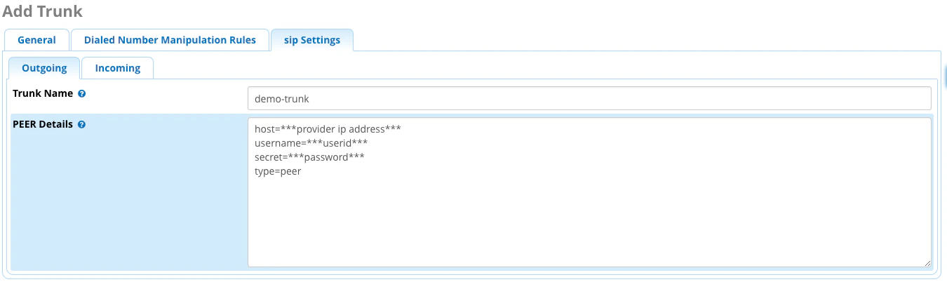 - Trunk Name: A friendly name for the trunk (for example, demo-trunk)