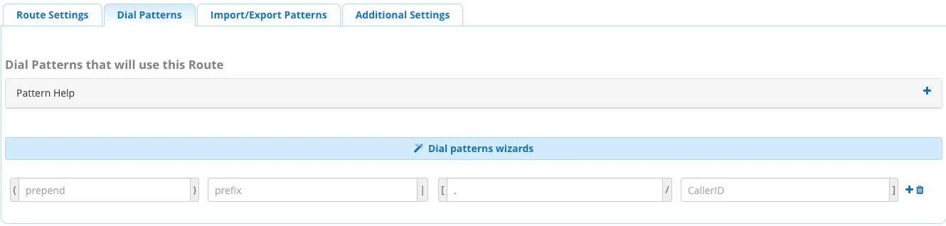 - Add dial pattern, you can choose to match any specific digits or use ”.” as a wildcard to match one or more characters.