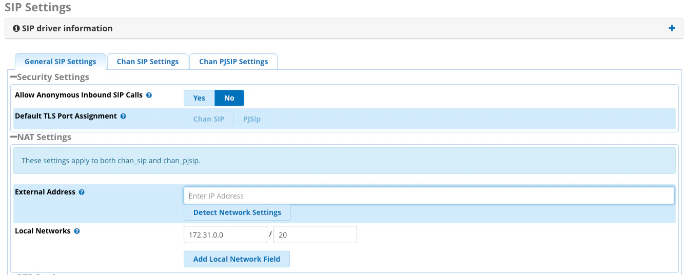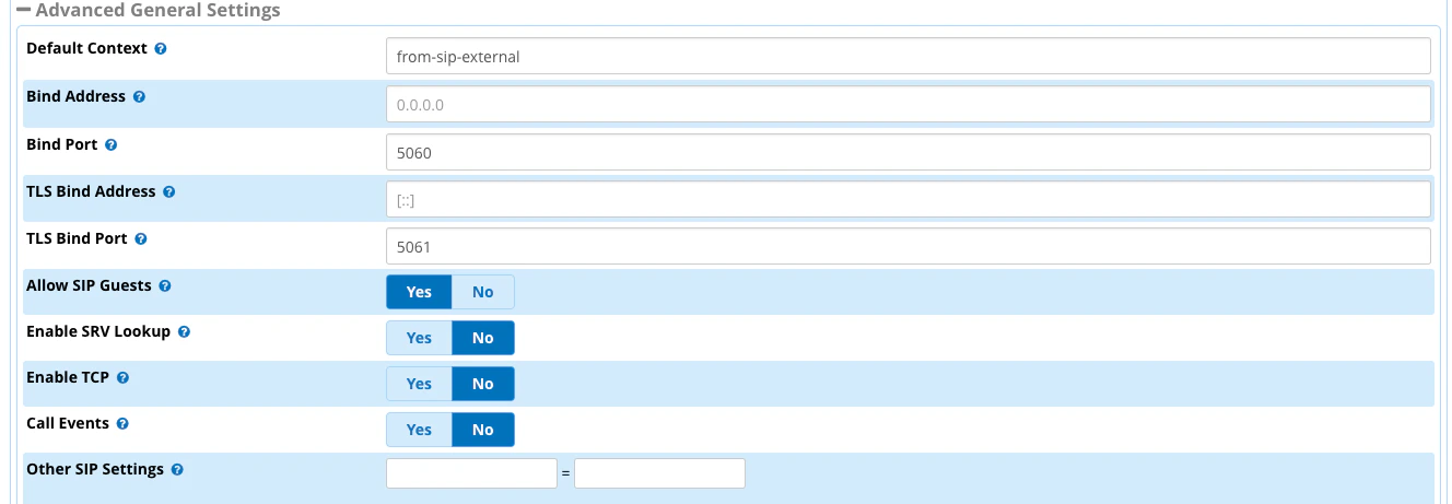 - Next, enter the following details in the Chan SIP Settings tab in Advance General Settings section :