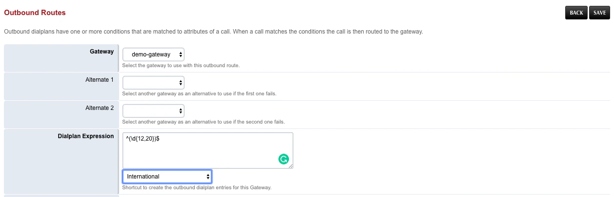 - Gateway: A friendly name for the trunk (for example, demo-gateway)