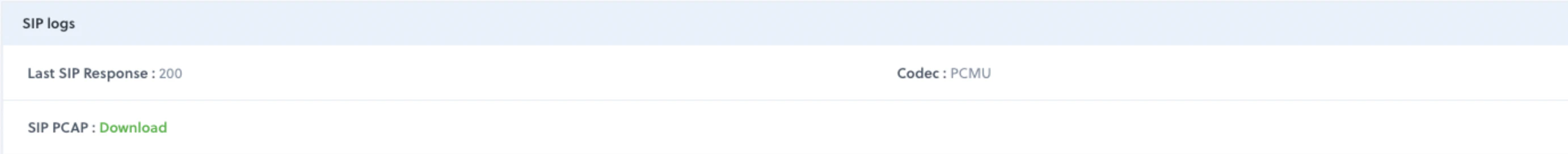 SIP logs contain the SIP call flow, the final SIP response, and provide the option to download the SIP PCAP.- Final SIP response: Indicates the last SIP response received either from Plivo or from your PBX.